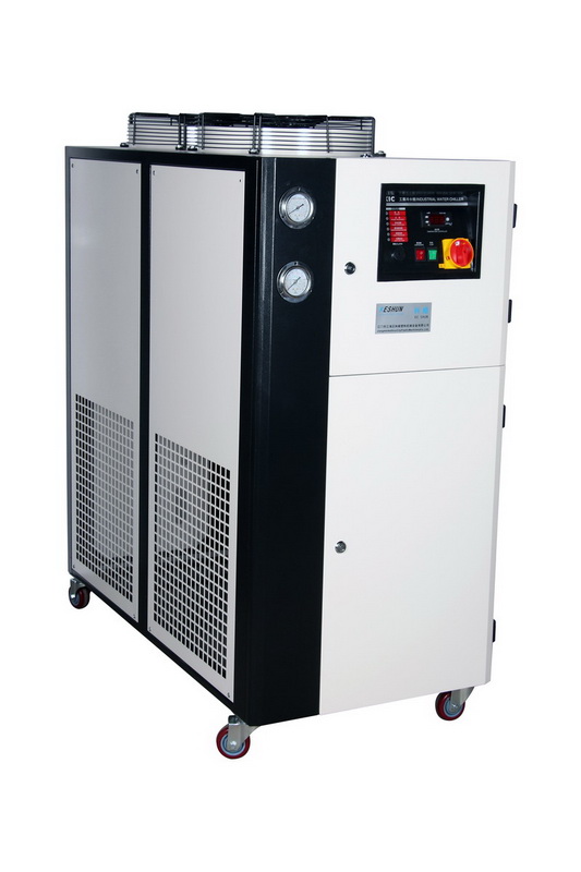 FEATURES: The KSC-W series of water-cooled water chillers use a single closed-loop design for pressurised refrigerant.All models are equipped with compressor and motor overload protection,phase shortage and reversal alarms, anti-freeze thermostat,pressure gauges,etc.They feature excellent performance and a long lifespan. The series of working flow is based on the basic principle of heat exchange. It is applicable to the industry that requires flow of precisely controlled chilled water,and considered as indispensable equlpment for modern industry.